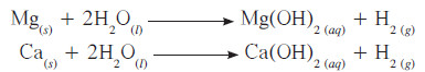 - يتفاعل الكالسيوم والمغنيسيوم مع الهالوجينات ويعطيان الهاليدات المقابلة تبعًا للمعادلات التالية: