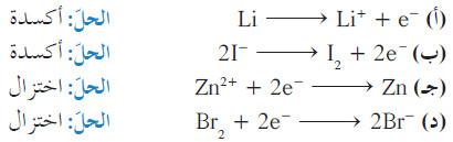 مثال (2): وضح أيا من المتفاعلات في المعادلات التالية حدث لها عملية أكسدة، وأيا منها حدث لها عملية اختزال، وعرّف العامل المؤكسد والعامل المختزل في كل معادلة: